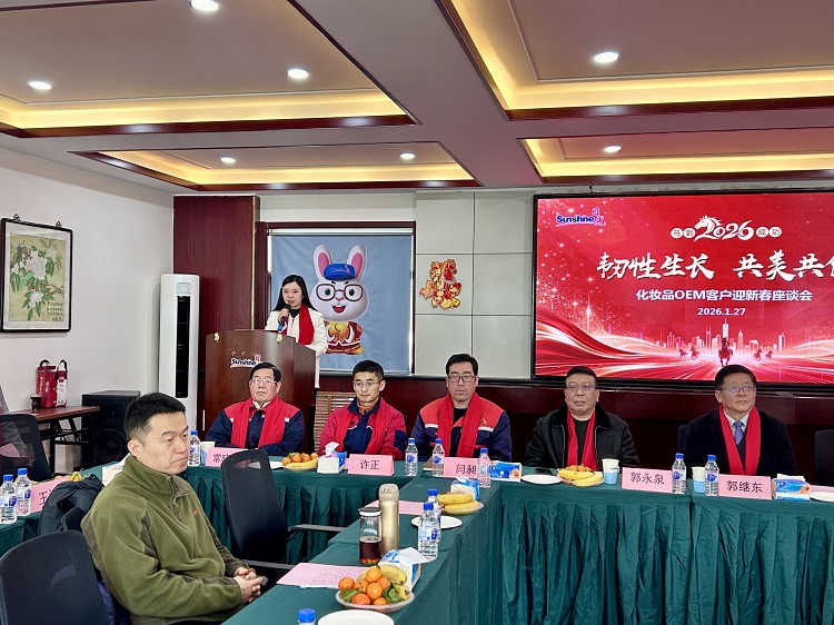 2026年1月27日,以“韧性生长,共美共创”为主题的北京日光化妆品OEM客户迎新春座谈会在北京日光公司顺利召开。北京日光OEM客户齐聚一堂,共话行业趋势、共探合作新机,为新一年的共赢发展凝聚共识、积蓄力量(部分OEM客户因时间原因未能到场)。
