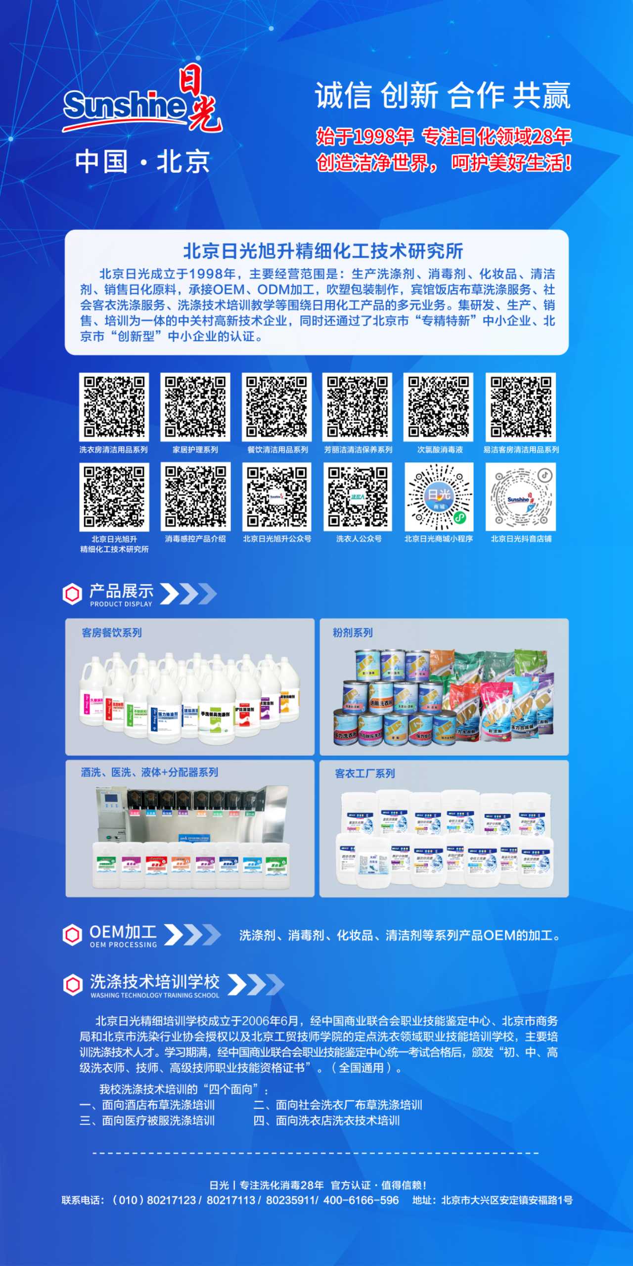 此次竞赛不仅是洗染从业者比拼技艺的竞技场,更是行业优质产品与专业技能融合展示的平台。北京日光公司通过提供专业的久朋去渍剂套装,以实际行动助力洗染行业技能提升,既彰显了企业在洗染化工领域的专业实力,也为推动全国洗染业职业技能发展与技术创新注入了专业力量,见证着洗染人在匠心之路上的坚定前行。