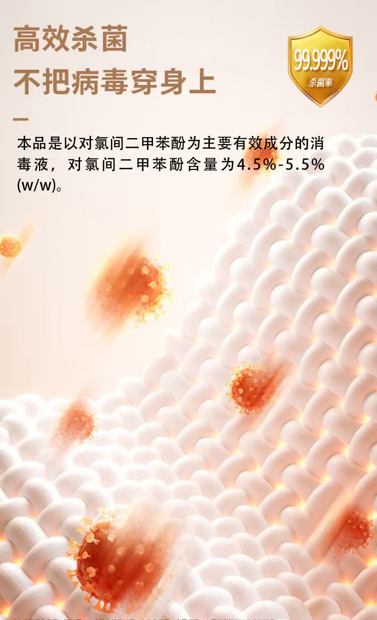 久朋衣物消毒液,以对氯间二甲苯酚为核心成分,杀菌率高达99.999%,能强效杀灭肠道致病菌、化脓性球菌等有害微生物,从根源瓦解织物里的健康威胁。它不仅不伤衣物,安全配方还适配儿童衣物、贴身内衣、床品等全场景织物消毒,1:50简单稀释浸泡,就能给全家穿上“健康防护衣”。