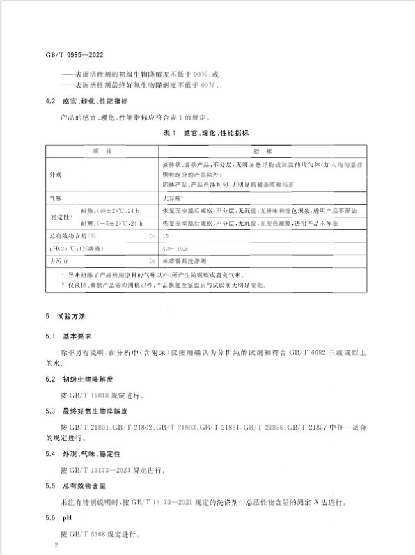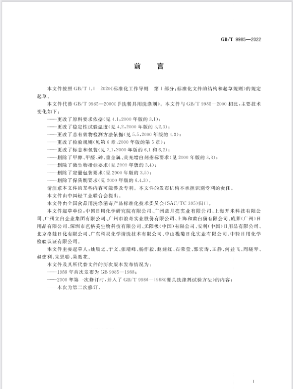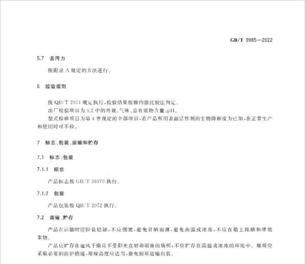 新版GB/T 9985-2022《手洗餐具用洗涤剂》