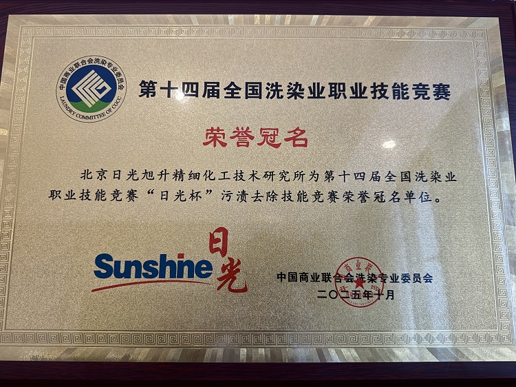 在第十四届全国洗染业职业技能竞赛中,北京日光旭升精细化工技术研究所凭借在洗染化工领域的扎实耕耘,斩获“荣誉冠名单位”与“指定化料供应商”双项殊荣,以专业实力为赛事和行业发展注入活力。