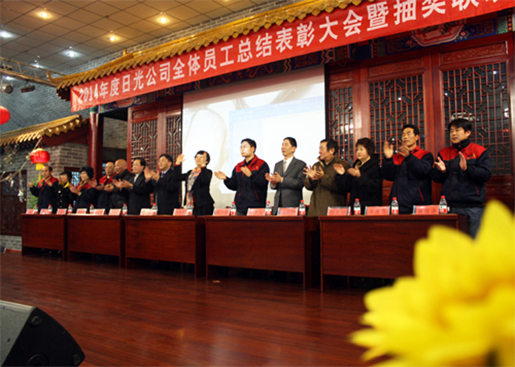 2015年2月14日晚,“2014年度日光公司全体员工总结表彰大会暨抽奖联欢”在日光银色大厅盛大举行。郭继东董事长、刘素芳总经理、郭红常务副总、王超义校长、刘少祥厂长、郭永泉副总、唐正强副总、王顺利技术总监、牛建国售后经理、邵宗琪总经理助理、田萍玲副总、张连雪总经理助理、黄振涛总经理助理、彭剑锋总经理助理等公司高层领导以及日光全体员工汇聚一堂,共同见证日光家人在2014年所取得的骄人成绩。