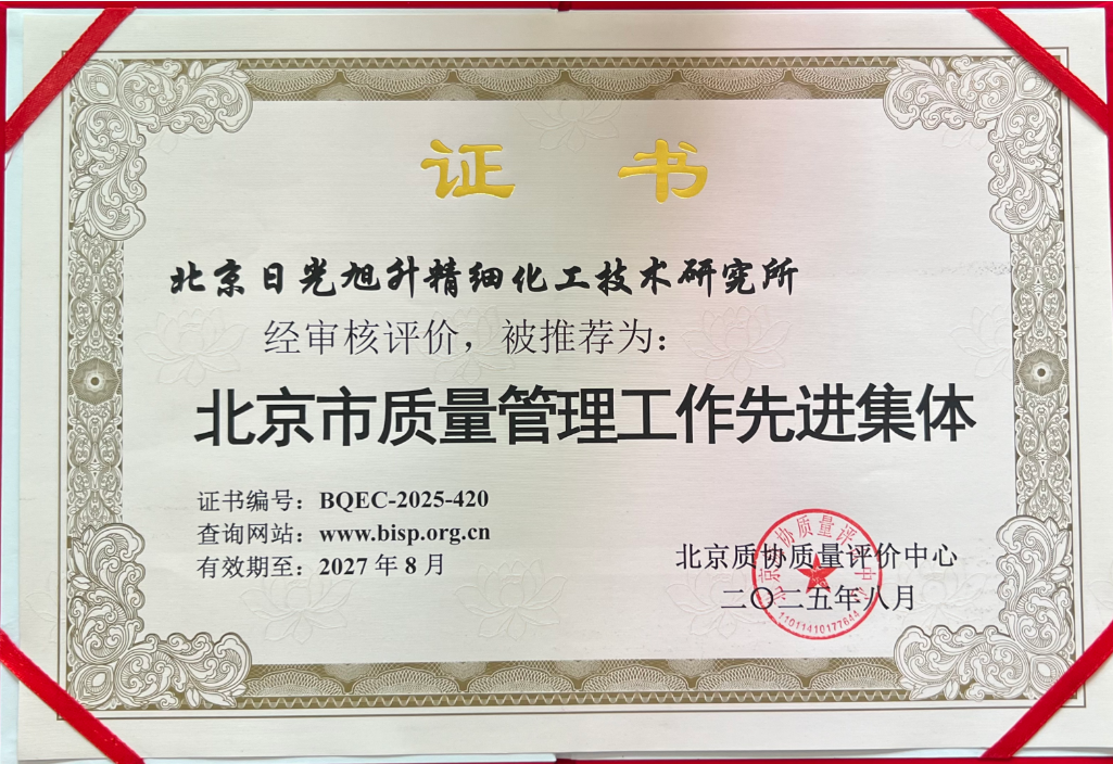 近日,北京日光旭升精细化工技术研究所凭借卓越的质量管理成效,荣获“北京市质量管理工作先进集体”称号。这一荣誉不仅是对日光公司多年来坚持质量至上、持续创新的高度认可,也为行业树立了新的标杆。