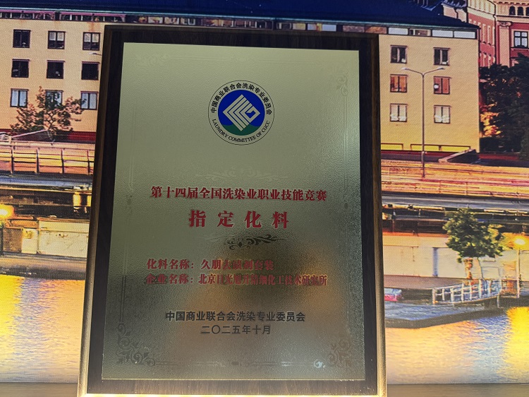 北京日光公司的久朋去渍剂套装被选定为赛事指定化料,其在复杂污渍场景下展现的高效、安全去污性能,以及对多种面料的适配性,是北京日光公司多年来深耕洗染化料研发的成果体现。