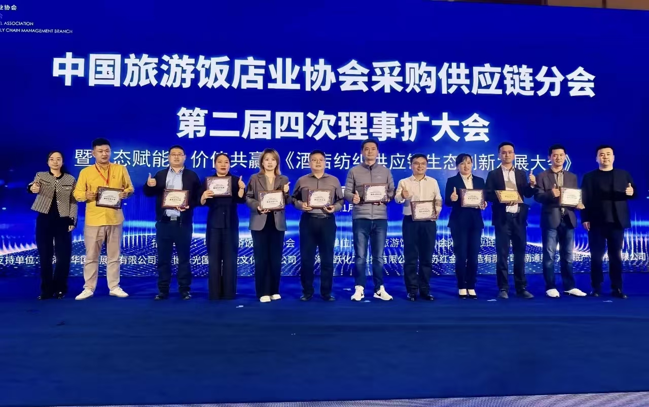 2025年11月7日,于江苏南通举办的酒店纺织供应链生态创新发展大会上,北京日光公司凭借其卓越的产品质量、可靠的供应链服务与持续的创新能力和良好的行业口碑,荣获由中国旅游饭店业协会采购供应链分会颁发的 “最佳合作伙伴” 荣誉。