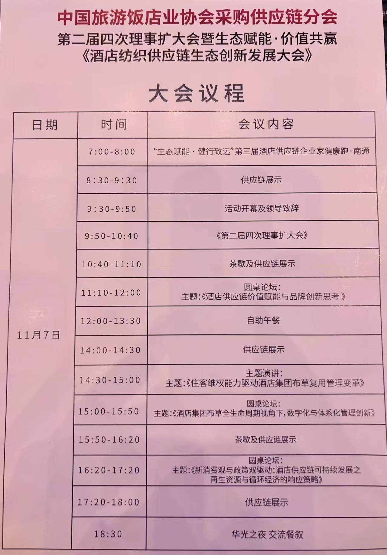 中国旅游饭店业协会采购供应链分会第二届四次理事扩大会于南通顺利召开 日光公司受邀参会
