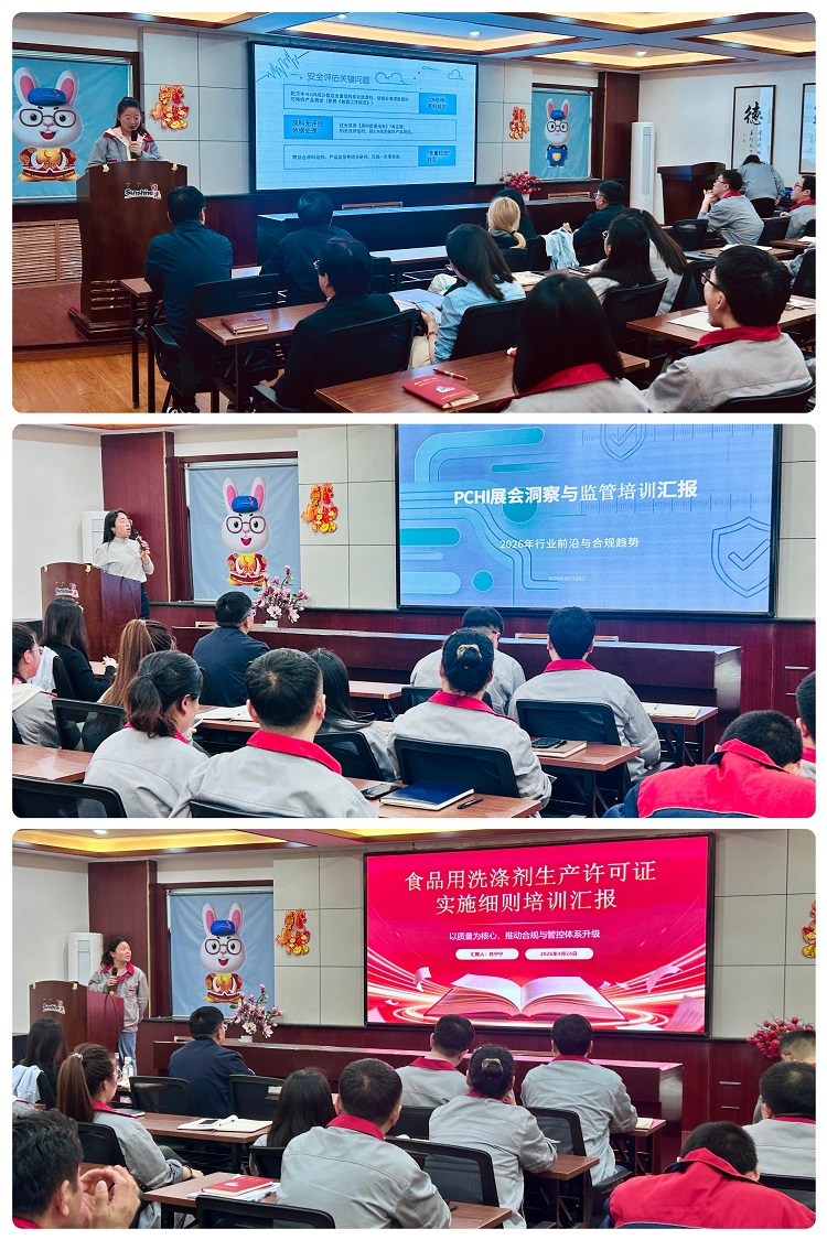 李琳琳、闫昶、耿志华分别围绕上海国际酒店与清洁设备展览会参展心得,分享行业最新动态、市场发展趋势与前沿技术成果;常务副总经理郭红结合2026中国洗涤用品行业高质量发展论坛参会内容,传递行业高质量发展理念与发展方向;刘文芳针对化妆品监管培训会重点内容,开展专业政策解读与合规工作分享。郜利霞结合化妆品监管培训会、PCHI中国国际化妆品、个人及家庭护理用品原料展览会参展经历,带来多维度行业知识分享;白宁宁、朱桂中分别围绕化妆品监管培训会、食品相关产品生产许可证实施细则,进行专业内容梳理与工作要点讲解;姚宏伟全面整合PCHI展会、化妆品监管培训会、食品相关产品生产许可证实施细则相关学习内容,并结合华住验厂工作开展问题总结与经验复盘。
