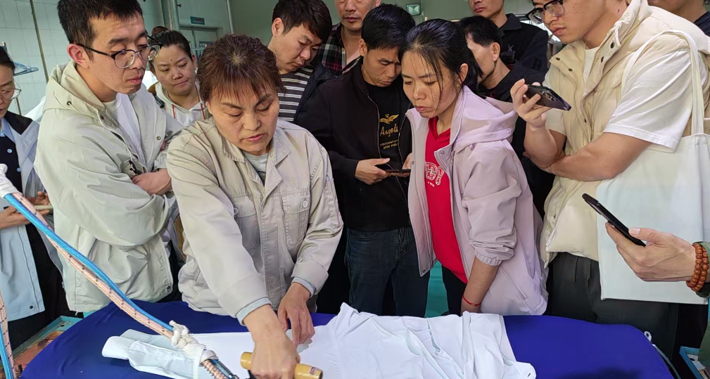 熨烫技术实操由北京日光客衣车间主任王卫华为大家现场演示熨烫技术,并向各位学员介绍熨烫不同服装的要点和注意事项。